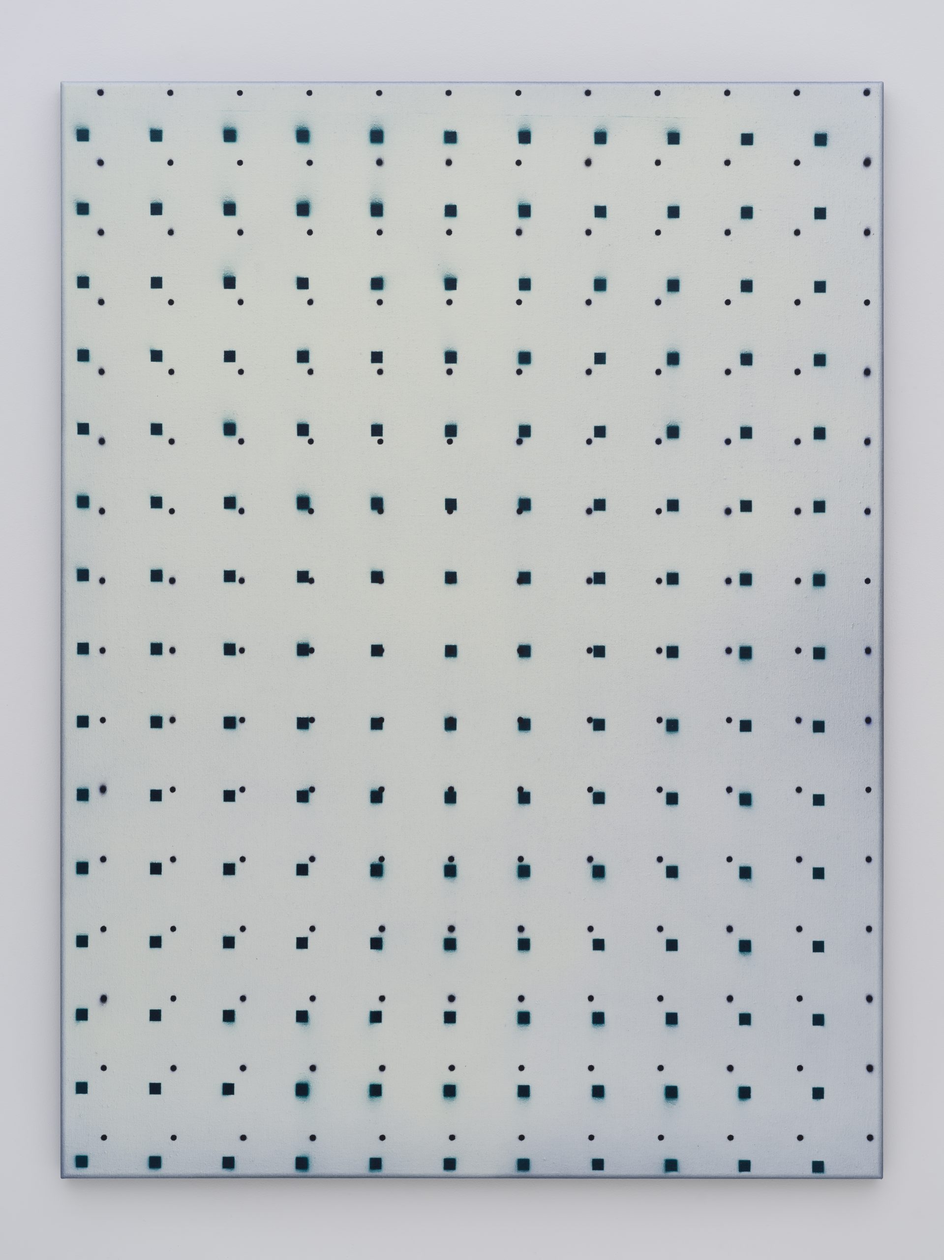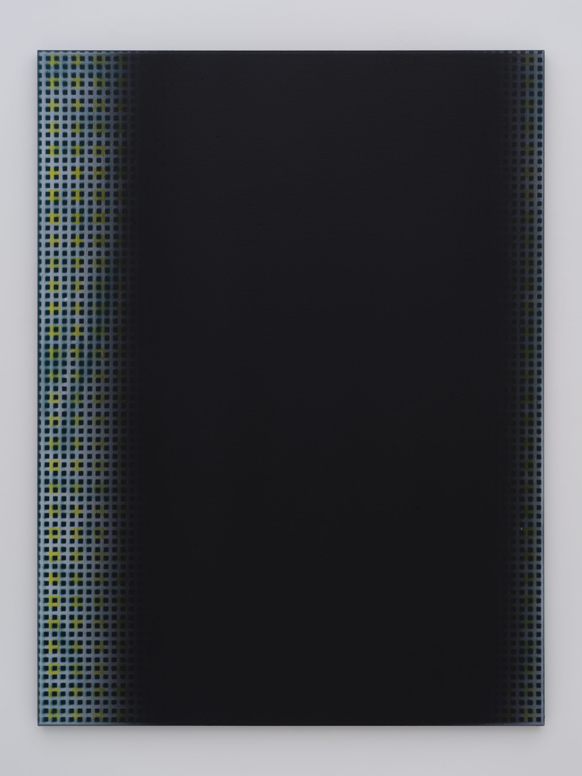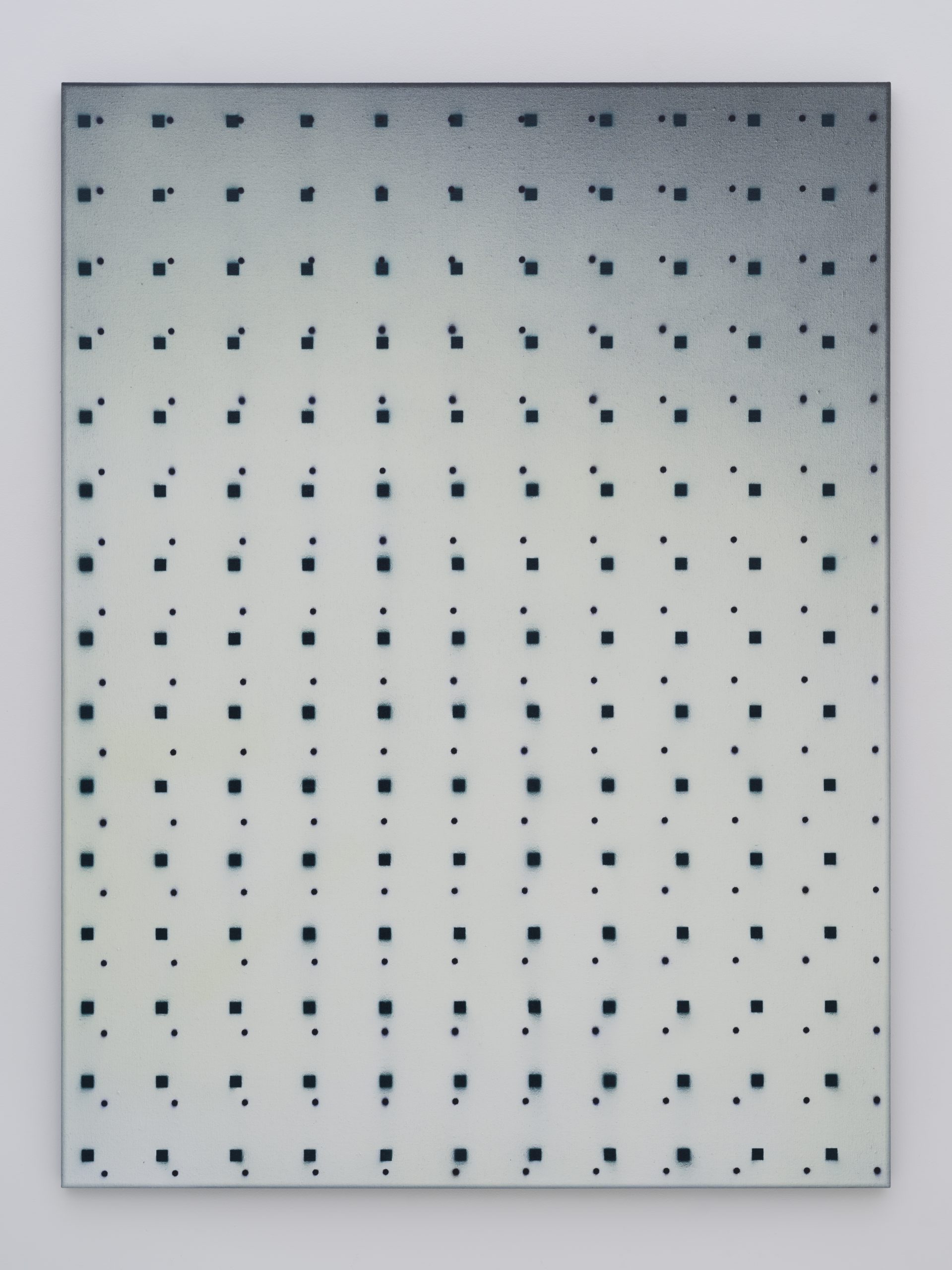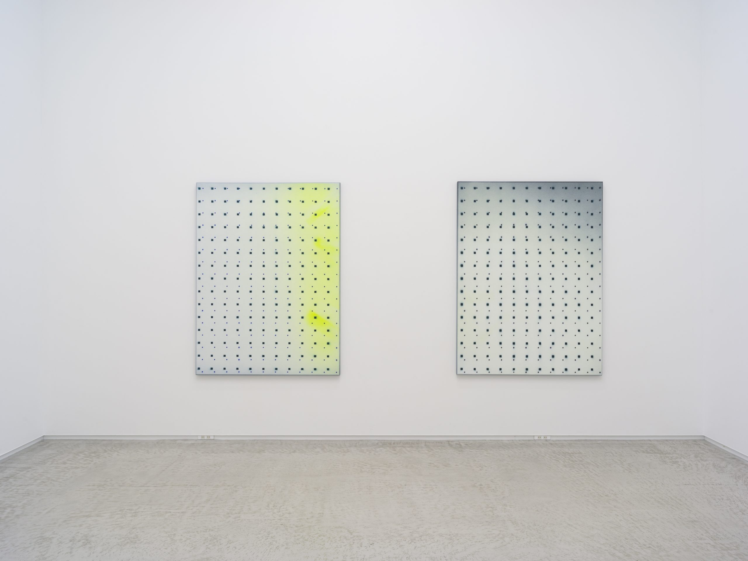 この展覧会にてネイサン・ヒルデンは一連の新作を発表します。これらの作品は彼の初期のキャンバス絵画に深く根ざしています。当時の作品は機械的かつジェスチャー的なプロセスで、スプレーペイントと密に重ねられたライナーステンシルのパターンが用いられたキャンバス絵画でした。現在の作品では、絵画の内部空間が開かれ、反復の要素はグリッド上の点、正方形、円であり、色彩は豊かなニュアンスを持っています。